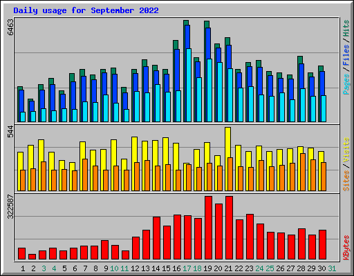 | 日 | Hits | Files | Pages | Visits | Sites | KBytes | ||||||